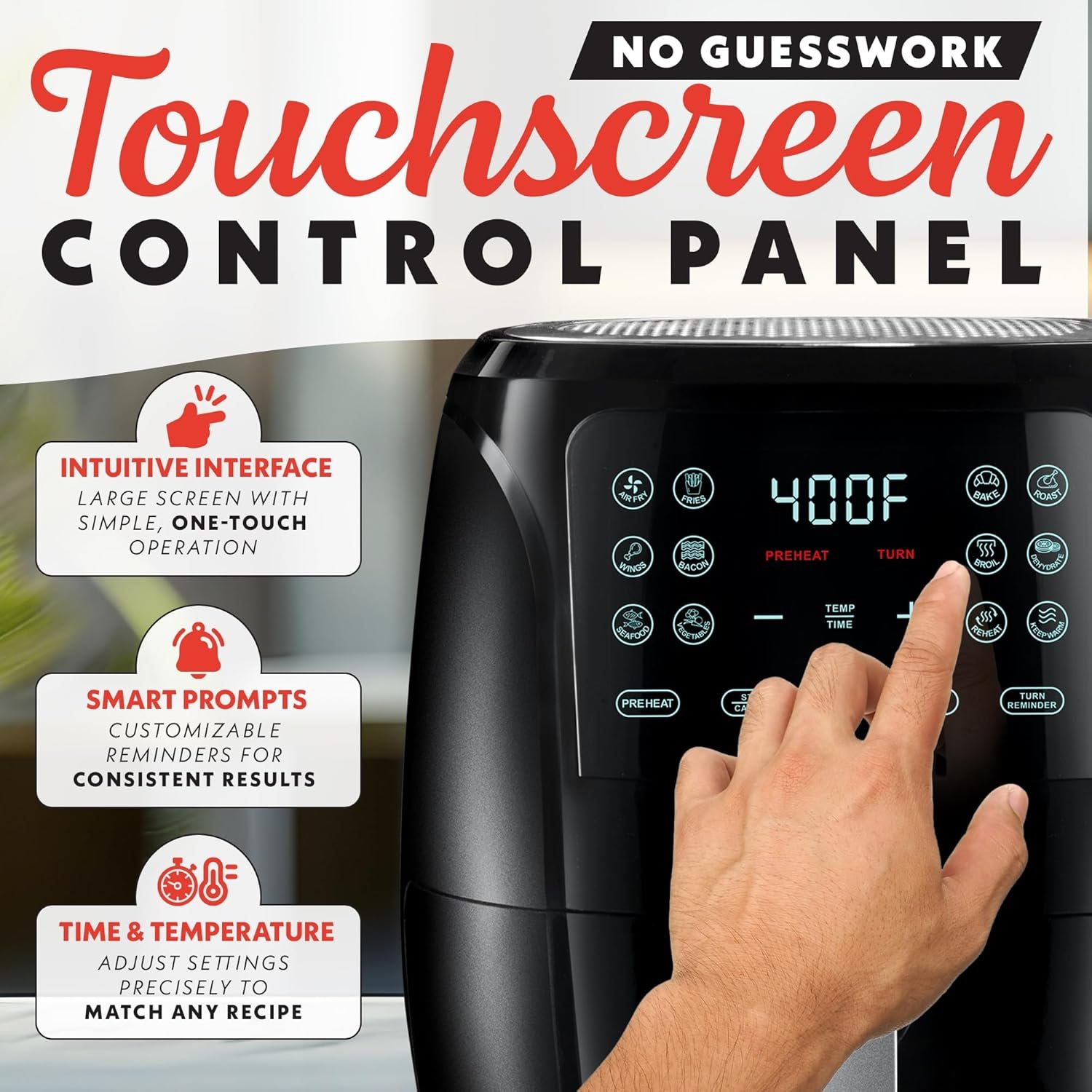 The air fryer from Gourmia offers a family-sized 6 qt cooking capacity that fits weeknight meals and weekend snacks with ease. With this product, you can enjoy healthier meals using less oil, while saving time in your daily kitchen routine.