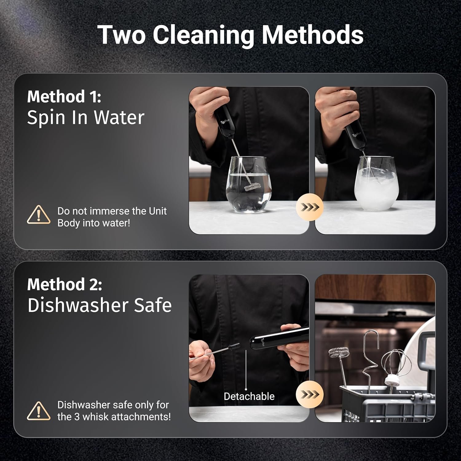• Detachable Double Whisk: This cappuccino frother features dishwasher-safe whisk attachments for easy care, ideal for busy kitchens.